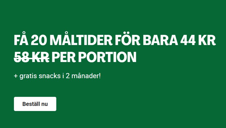Signa upp dig hos Hello Fresh – och få gratis snacks för två månader. En bra deal för dig som vill spara pengar och få mer tid. En måltid från Hello Fresh levereras hem till dig och du får mat för endast 44 kr per portion.