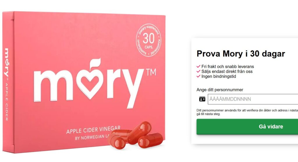 Mory är ett tillskott som är utvecklat i Norge. Med hjälp av äppelcidervinäger och massor annat nyttigt – så minskar du aptiten och förbränner mer. Du kan självklart testa dessa kapslar gratis – men du behöver betala 99 kr för frakten. Läs mer om Mory viktminskning via länken.